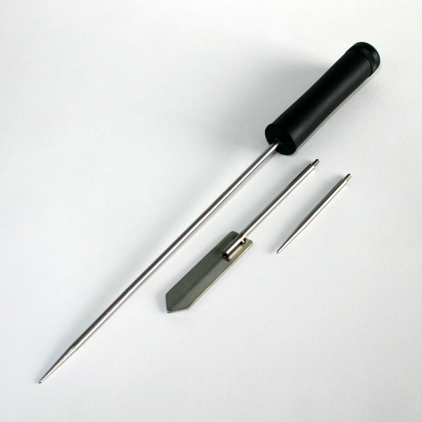 - Non-magnetic mine prodders of varying lengths to suit, up to 40 cm (16 inches) long. These are pointed and strong enough to penetrate hard, compacted ground.