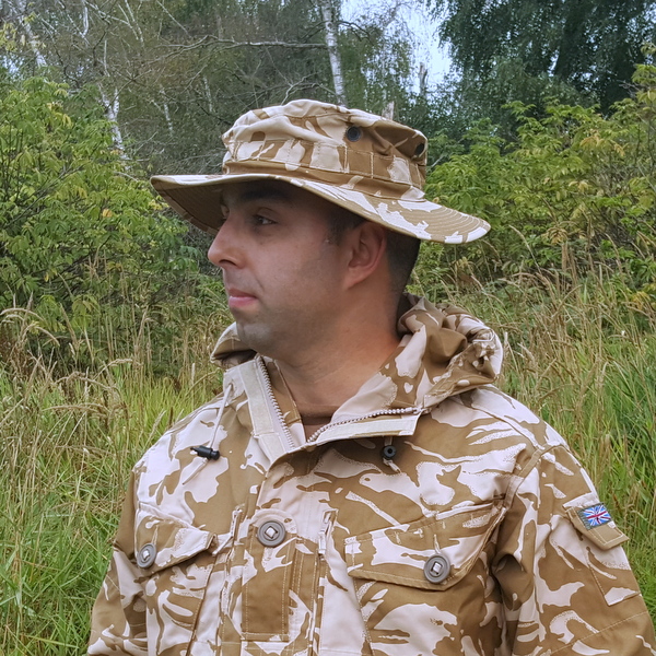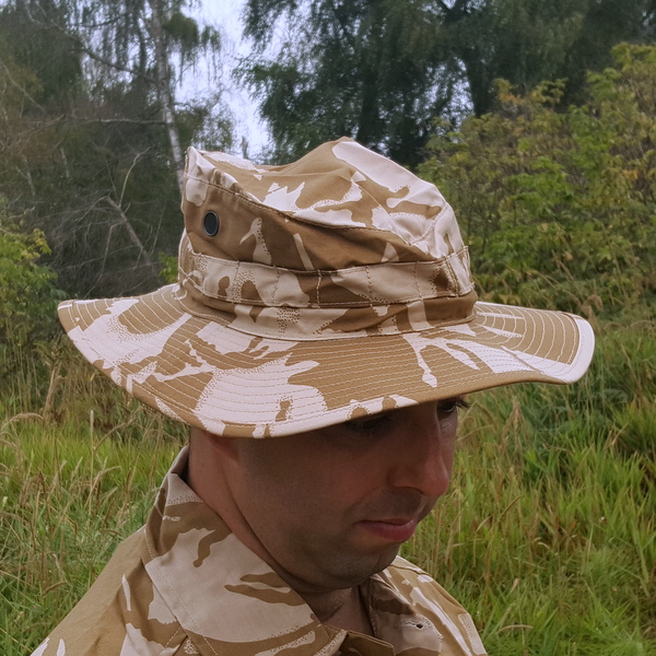 The classic DPM Jungle Hat is also available for use in arid operational areas.