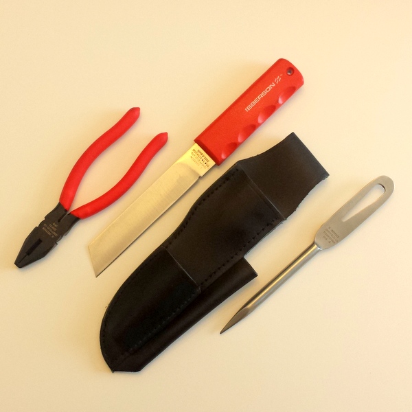 This handy belt worn kit carries a selection of useful tools for Sailors and yachters alike. On general issue to sailors of the British Royal Navy, the 3 Piece Yachtsmans Kit is supplied with a plain edge stainless steel riggers knife (NSN: 5110-99-601-8200) and a pair of high quality plated pliers (NSN: 5120 99 225 9134). Also included for rope work is a stainless steel shackler spike (NSN: 5120 99 781 4904). The kit comes with its own belt holster made from quality leather.