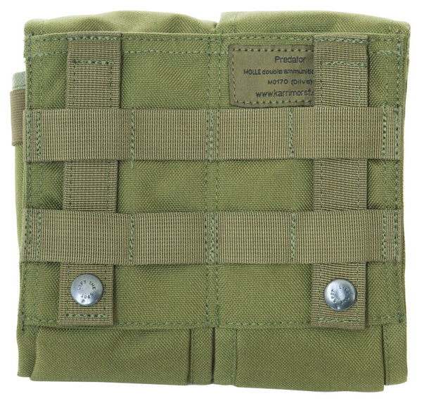 With double the capacity of the single version the Predator MOLLE double ammunition pouch enables more equipment to be carried. The pouches can be used to carry ammunition or other items as required. The design of the pouch allows smaller items to be carried securely by cinching the pouch. The pouch can be attached to MOLLE enabled equipment such as the Predator PATROL 45 or body armour. This double pouch carries 6 x 30rd 5.56mm Magazine (C7, M4 SA80) or 120rds of 7.62mm link in 60 rd belts.
