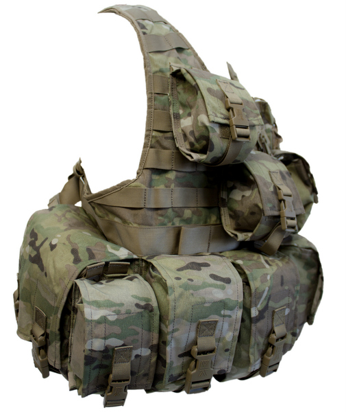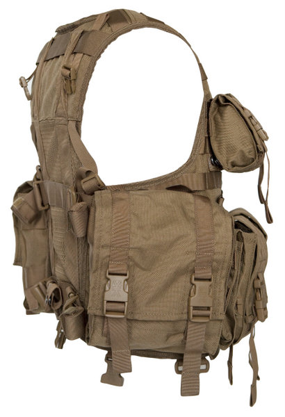 Size adjustable for use with or without body armour, the SCV offers outstanding ammunition carry capacity with the four fixed 3 x 30rd 5.56mm magazine pouches and twin OMNI pouches, each capable of carrying 8 x 30 rd 5.56mm magazines, or even belted ammunition. All pouches have side release buckles and Hook & Loop backup attachment with optional silencing strips.