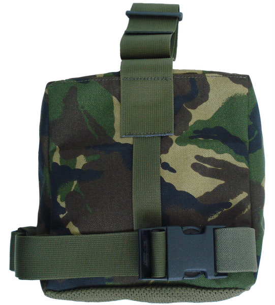 The Karrimor SF drop leg dump pouch, available in two colour options is designed to carry various items of equipment or ammunition, particularly empty magazines. The drop leg design is attached to a load carry vest or belt using the attached 50mm webbing and side release buckle.