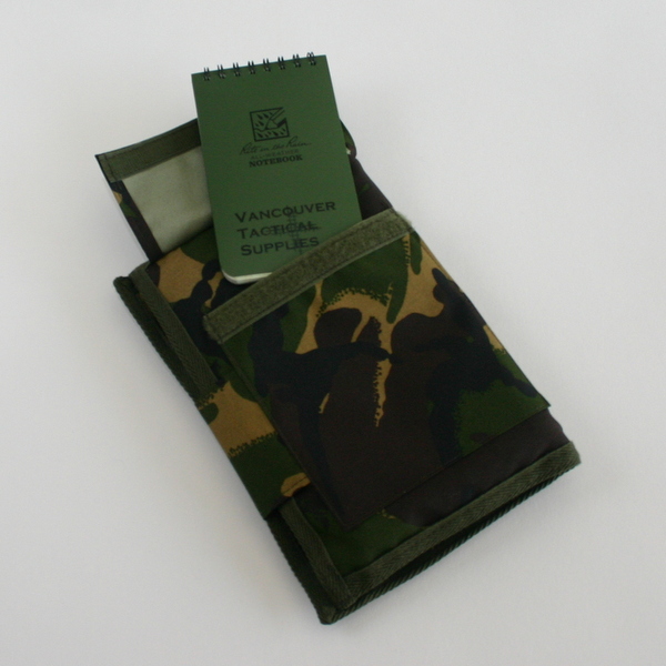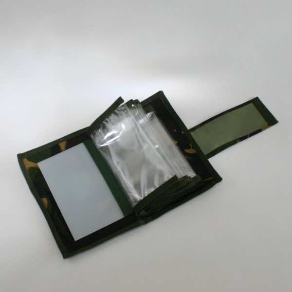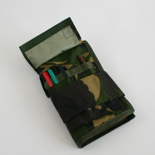 An adaptation of the Netheravon Infanteer made by popular request, the Commanders Aide Memoire is also made to fit in a combat trouser cargo pocket but instead of holding a map, it consists of ten clear UVS pockets which hold range cards, orders format cards and other quick reference material. When folded, the front cover has a pen pocket with hook & loop closure flap, and the rear cover has a hook & loop closure notebook pocket.