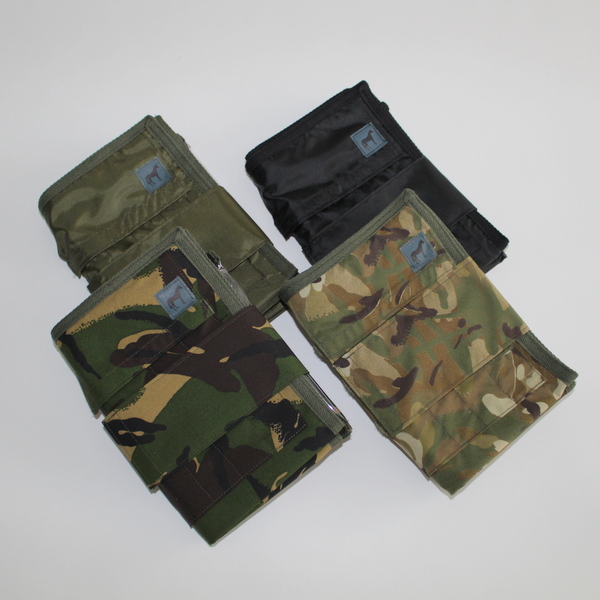 The DPM and Multi Terrain Camouflage versions are manufactured using Military waterproof fabric whilst the Olive Green and Black versions utilize a lighter weight Polypropylene fabric.