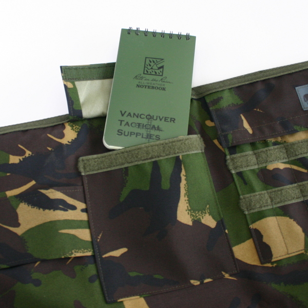 The DPM and Multi Terrain Camouflage versions are manufactured using Military waterproof fabric whilst the Olive Green and Black versions utilize a lighter weight Polypropylene fabric.