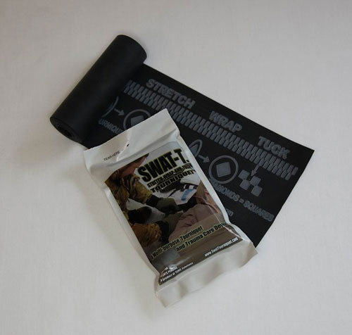 The SWAT-Tourniquet™ is a unique, multipurpose dressing. Its name provides a description for usage; Stretch, Wrap, and Tuck, but also the communities for whom it was developed - military and civilian Special Weapons and Tactics teams. These teams operate in an environment that has a high incidence of penetrating trauma. Most preventable deaths in the operational environment are from extremity bleeding.