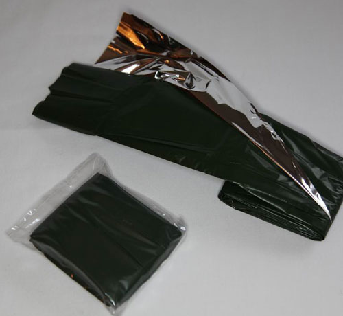 This emergency blanket is manufactured from a highly reflective foil material designed to retain a persons body heat, thereby preventing cold injury. Useful also for any patients suffering from shock or for use in a survival or first aid kit. Reverse side is olive colored to minimize visible light reflection. Size is 202cm x 132cm and weight 60g.